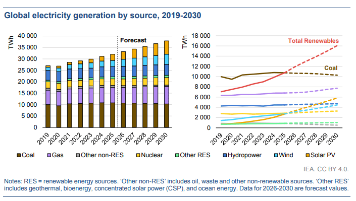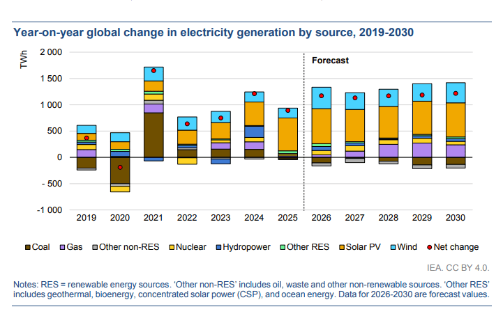 國際能源署(IEA)6日發(fā)布《2026年電力市場展望》,預(yù)測在2026-2030年,全球發(fā)電量將達到多個新的里程碑。展望中指出:可再生能源目前已超過煤炭發(fā)電,核能發(fā)電量也將繼續(xù)擴張并創(chuàng)造新的紀錄。受低排放能源增長的制約,全球燃煤發(fā)電量預(yù)計將略有下降,到2030年,新增需求將由可再生能源、天然氣和核能滿足。到2030年,全球可再生能源和核能發(fā)電占比將達到50%??稍偕茉吹膹妱旁鲩L以及許多地區(qū)核能和天然氣發(fā)電量的穩(wěn)步增長,將在預(yù)測中取代全球燃煤發(fā)...