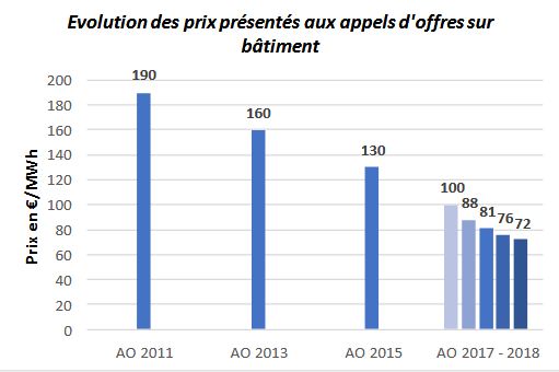 “再次,建筑物上的太陽能裝置顯示出競爭力日益提高,價格比之前的招標下降了5%,”De Rugy部長說。