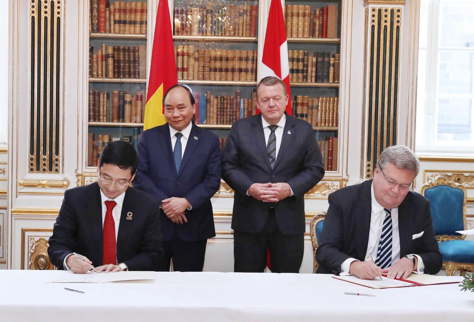 N&G集團(tuán)與VESTAS集團(tuán)之間的可再生能源發(fā)展協(xié)議簽署儀式在越南總理Nguyen Xuan Phuc和丹麥?zhǔn)紫郘arsLøkkeRasmussen的陪同下舉行。