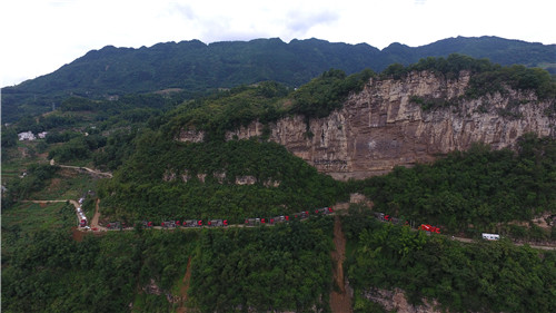 杰瑞壓裂車組行駛在四川頁巖氣地區蜿蜒的山路中