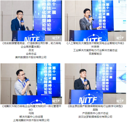 上午,來(lái)自上海中廣核工程科技有限公司、中核核電運(yùn)行管理有限公司、美林?jǐn)?shù)據(jù)技術(shù)股份有限公司、百度智能云、上海鴻翼軟件技術(shù)股份有限公司、武漢達(dá)夢(mèng)數(shù)據(jù)庫(kù)股份有限公司的領(lǐng)導(dǎo)專家圍繞“核電企業(yè)數(shù)字化轉(zhuǎn)型和工業(yè)互聯(lián)網(wǎng)平臺(tái)建設(shè)探索及成果”主題與大家開展深度交流。